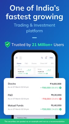 - Use voice trading feature to trade via voice commands, which covers stocks, F&O, and all 5200 listed companies.