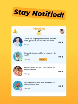 PearUp skips the swiping and focuses on shared interests and mutual vibes. You tell us how you feel, and we match you with people who genuinely want to connect—so you spend less time scrolling and more time hanging out.