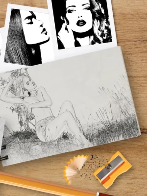 Sketch your images with black and white pencil effects.