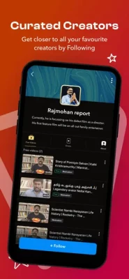 Enjoy free and premium quality 3 to 10 minutes length videos of trendy creators across different topics from infotainment to entertainment. Discover new content by browsing through many video categories or searching for specific creators and topics.