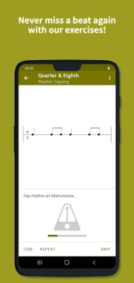 • Rhythm training exercises: learn to read and recognize rhythm durations