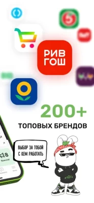 — выбирай бренды для первого сотрудничества: Кинопоиск, Магнит, Додо Пицца, СберМаркет, OZON, Л’Этуаль, TanukiFamily, Лента, Утконос, Самокат, Глобус, ВкусВилл, Рив Гош, Папа Джонс, METRO, ТВОЕ, Start.ru, Золотое Яблоко, Яндекс.Маркет, AliExpress, Перекрёсток, Делимобиль или другие;
