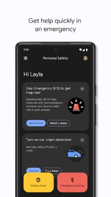 • Safety Check: Set a check-in timer for your phone to confirm you’re safe. If you don’t respond when the timer runs out, Emergency Sharing automatically starts. Also works with Google Assistant.