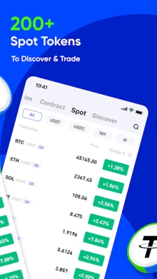 2. Derivatives (Perpetual Contract) trading with up to 100x leverage and settled in USDT, USD, BTC, or ETH.