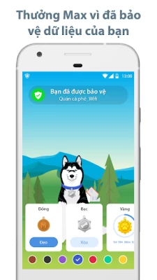 Hãy thưởng cho Max vì đã bảo vệ sự riêng tư của bạn! Bạn có thể giành được nhiều loại vòng cổ khác nhau cho Max và thưởng cậu ấy vì đã giữ an toàn cho dữ liệu của bạn. Hãy kiếm các vòng cổ và huy chương vui nhộn cho Max, cậu ấy bảo vệ bạn càng lâu, bạn sẽ càng mở khóa được nhiều vòng cổ.