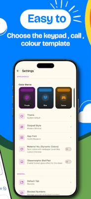 • Call screen styles – Choose from multiple in-call screen layouts (e.g. slide to answer, buttons, waveform, grid, frosted, glass)