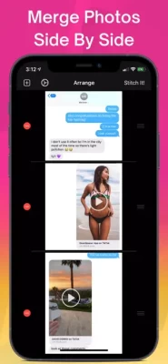 ● Stitch together screenshots of text conversations into one organized image
