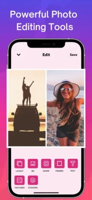 Everything you need for photo editing all in one app. Stitch photos together, watermark and add text to pictures, use hundreds of templates, collages, filters, and more.
