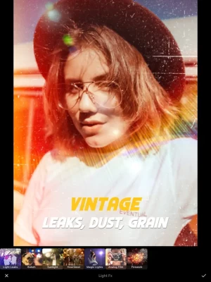 Add light leak, lens flare, confetti, glitter, firework, fire, rainbow, dust, grain, scratches, rain, show, fog and mist textures to make your photos even more special.