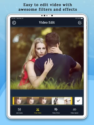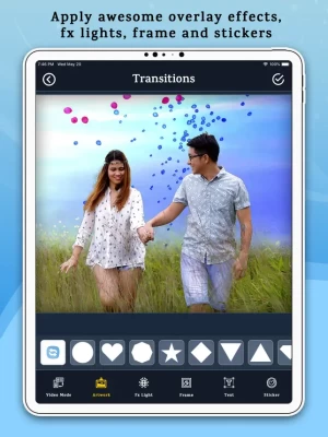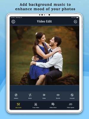 This app helps you to create beautiful photo slideshow or video from photos with different types of transitions, video output mode, background and many more and edit your video like trim, add music and add overlay filters to videos.