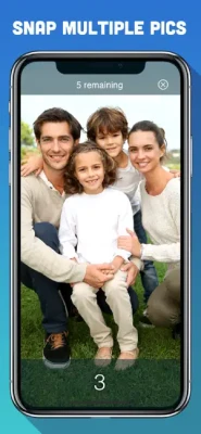 This app includes: • A photo timer with variable lengths • Count down audio • Multiple snap option • Flash Control • Preview & Social Share • Saves pics straight to your Photo Gallery