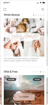 The presets are divided into thematic collections, so it's easy to choose the style you are interested in. The presets for city shots and shots with a beautiful waterfall background are usually different. Color rendition, brightness level, correction of certain tones change - there are many nuances. It remains to focus on a close collection in order to simplify the process of choosing suitable presets.