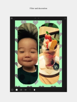 Choose a layout for 2 images or 3 images, and apply rounded corners. There is an infinite number of combinations.Create your special photo with PhotoFrame.