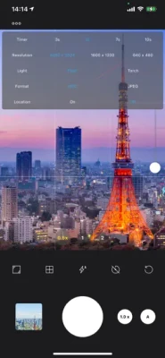 ■Custom Camera Functions - Flash - Resolution options for photos 1. iPhone6S or later ・4032 x 3024 (4:3), 3024 x3024 (1:1), 1920 x 1080 (16:9) 2. iPhone6 before ・3264 x 2448 (4:3), 2448 x 2448 (1:1), 1920 x 1080 (16:9) - Continuous shooting - Grid - AutoFocus - Exif Information 1. Display Exif Information 2. Edit Exif Information (GPS Information and Comment Information) - In camera