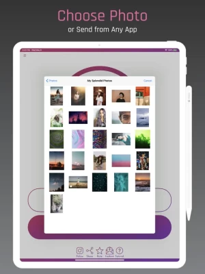 • Send any photo to PhotoSplit app from the iPhone Photo Gallery and other apps directly through Share widget.