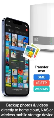 • Backup photos & videos to NAS devices, home cloud and wireless portable hard drives over FTP, SMB, WebDAV and SFTP. PhotoSync works flawlessly with: Synology, QNAP, Buffalo NAS, ownCloud, NextCloud, WD MyCloud, TrueNAS, OpenMediaVault…