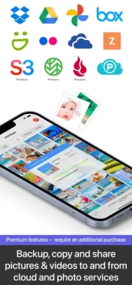 • Upload photos & videos to popular cloud and photo services like Dropbox, Google Drive, Google Photos, Flickr, OneDrive, SmugMug, Box, Zenfolio, pCloud…