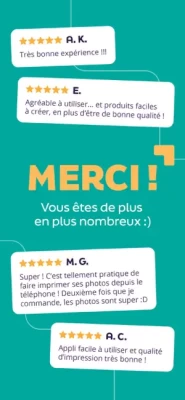 - Personnalisation de votre Tirage photo, Livre photo, Tirages rétro, Calendriers personnalisés, Toiles, Posters, Posters encadrés, Magnets ou Album photo depuis votre téléphone et votre appli mobile en un temps record