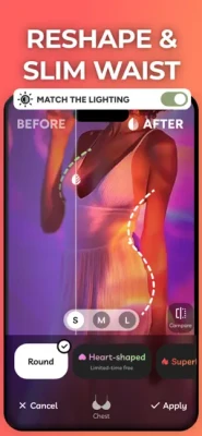 Transforming your body in photos has never been simpler! Whether you wish to slim down, enhance, or accentuate any part of your body, Pic+ will make it possible.