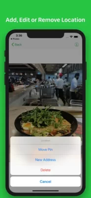 Photo app to easily add comments and date stamps. It can also edit location by address, coordinates and by dragging a pin on a map.