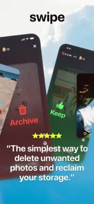 It’s like Tinder, but for your photos. Simply swipe left to Archive the pics you don’t want, and swipe right to Keep the ones you do. Once you’re done, clean up your entire Archive in just a couple of taps - no more deleting photos one by one or losing your selection.