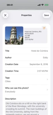 - with description, author, tags, EXIF metadata,