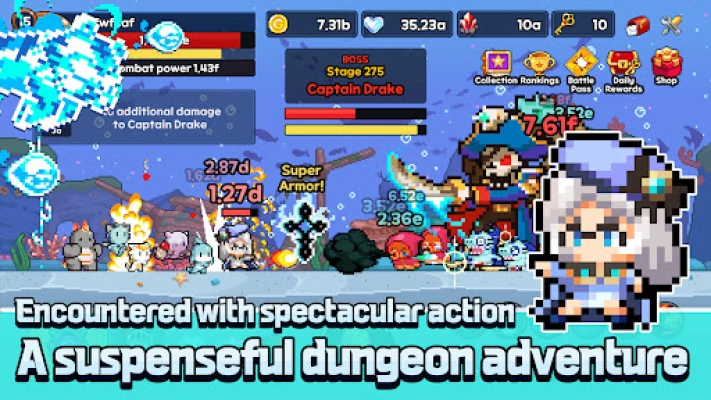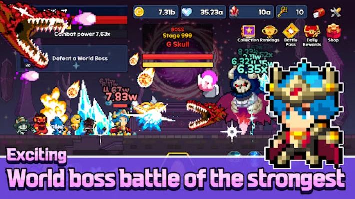 - Hành động nhàn rỗi với các chuyển động của người chơi và quái vật khác nhau!