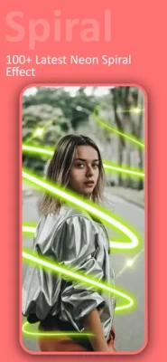Add mesmerizing neon spiral effects to your photos with just a few taps. Choose from a wide range of spiral patterns and customize them.