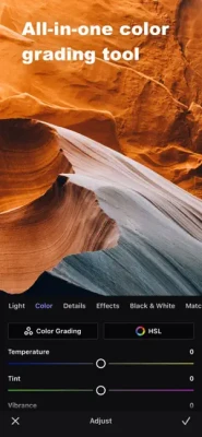 • Color grading tools: Selective color, color grading, color balance, HSL adjustment, color replacement, black and white, color matching, color lookup table (LUT)