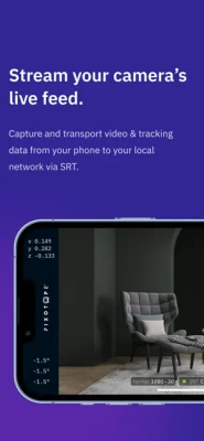 The data generated from the calculated position, rotation and tilt of the camera at every instant is embedded in the video stream and sent together with each video frame over the same SRT connection.