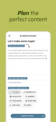- Create engaging captions and generate copy that connects with your followers in just a few taps