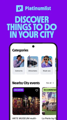 Platinumlist is designed with your entertainment needs in mind, providing easy access to a wide range of events and activities. With a few taps, you can buy tickets to live concerts, local attractions, exhibitions, and theme amusement parks. Our app offers a comprehensive list of entertainment events, ensuring you're always aware of the latest happenings around you.