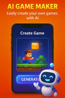 Have a game idea? Turn it into reality in minutes with our powerful, no-code AI game builder. Just describe your idea in natural language and watch it become a playable game in seconds. You can refine your game through AI-powered chat and publish it with a single tap.