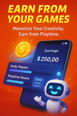 Creators get rewarded! Every minute players spend on your games counts. We track engagement time, and you can earn real money based on your game’s popularity.