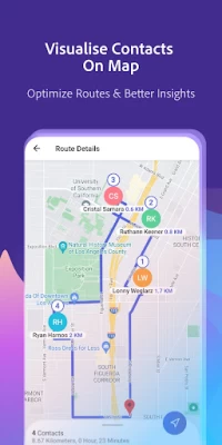 Geolocate your contacts, view them on a map, and plan your routes with precision. Our route planner optimizes your journey, ensuring you reach more contacts in less time. Get clear directions and maximize efficiency.