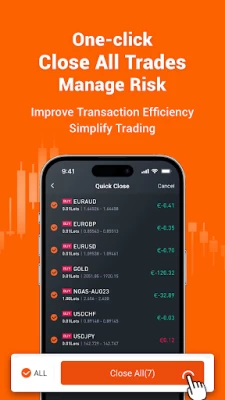 The "Close All" function allows users to quickly and efficiently close all of their open positions with just 1 click. This feature enables traders to manage risk more effectively and avoid the stress of manually closing each position.