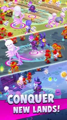 Invest in your arsenal and empower your minions with superior weapons and magical artifacts. Each upgrade enhances your team's fighting abilities, crucial for surviving tougher foes.