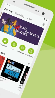 • Browse new/trending/top podcasts by topics or categories.