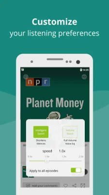 • Settings can be customized by podcast.