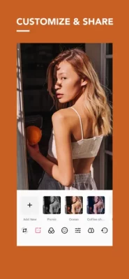 - Use basic editing tools such as Brightness, Contrast, Sharpness, Structure, Saturation, Temperature, Tint, Highlight, Shadow, White, Black, Fade, Vignette, and Atmosphere