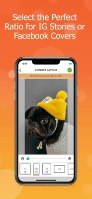 - Support multiple ratios including Facebook covers and 9:16 for IG Stories and Snapchat