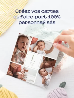 Nº1 de la personnalisation en ligne: carte postale, faire part naissance, faire part mariage, carte de voeux, carte anniversaire, carte invitation anniversaire, remerciement mariage, magnet, poster et album photo