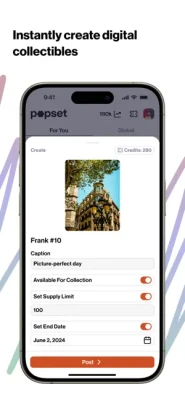 Features of Popset: - Create: Post content directly from your phone and make it available as a digital collectible - Collect: Explore and collect posts from other users - Connect: Form better connections with everyone from your favorite influencers to your closest friends