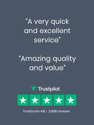 - We are rated “Excellent” on Trustpilot with over 2000 5-star ratings.