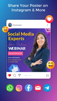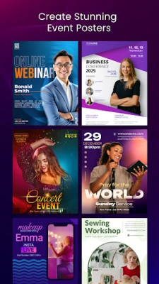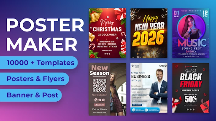 Poster maker and flyer maker app with new cool features helps you to design posters, Advertisement banner, ad flyer, invitation cards, happy birthday greetings, music festival posters, motivational quotes and youtube thumbnail images. All kind of graphic design for social media, Instagram post and story.
