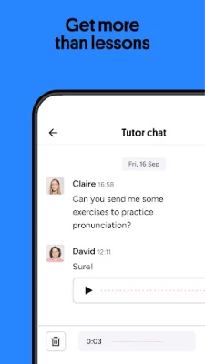 App học ngoại ngữ này thậm chí còn cho phép bạn trò chuyện trực tiếp với các giáo viên thông qua giao diện trò chuyện trước khi bạn đăng ký học bài học đầu tiên.