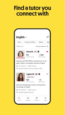 Để việc học ngôn ngữ trở nên dễ dàng hơn, bạn có thể học với một giáo viên chuyên nghiệp. App học tiếng Anh này cung cấp nhiều công cụ khác nhau để giúp bạn tìm giáo viên tốt nhất, bao gồm xem qua các đánh giá của học sinh, xem các bài giảng dưới dạng video ngắn và tham khảo hồ sơ thông tin của giáo viên.