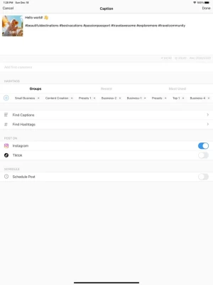 Write your captions in advance and perfect them. Save your hashtag groups within the app and add them to new posts at a press of a button.