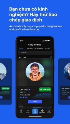 - Sao chép giao dịch: chọn một trong những trader có thành tích tốt nhất.