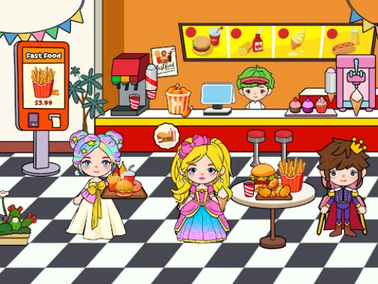 Fast Food Open a fast food shop or just as the guest to enjoy french fries, hamburger,fried chicken and frozen cola.